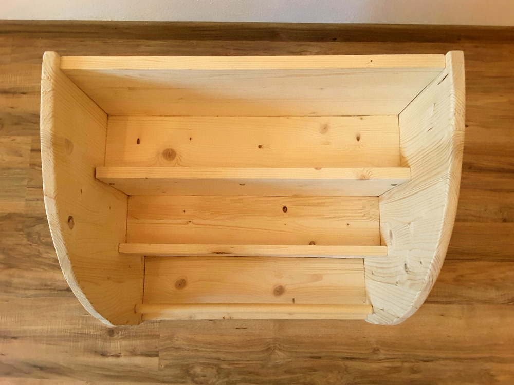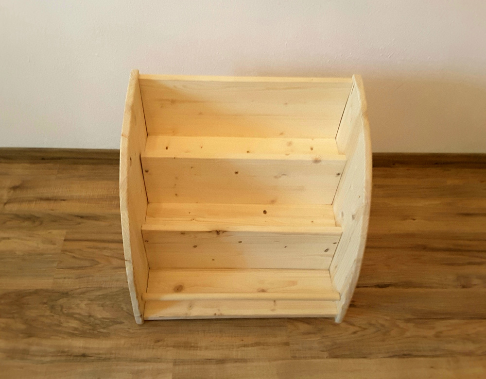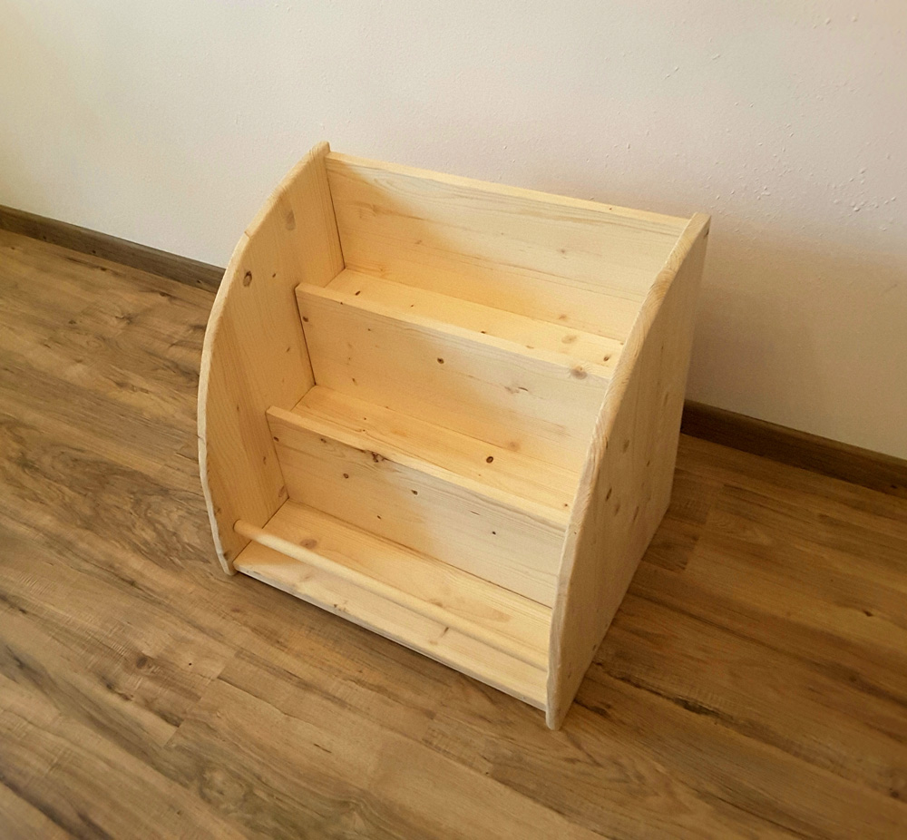 Interamente FATTA A MANO in legno di abete massello, permetterà ai vostri bimbi di avere i loro primi libricini a portata di mano e soprattutto di occhi.