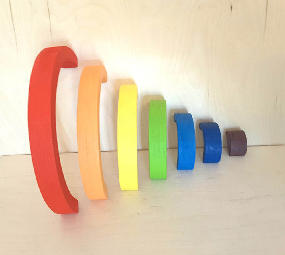 Ora possiamo trovare questo arcobaleno nelle scuole Waldorf che seguono il metodo educativo basato sulla filosofia e la pedagogia di Rudolf Steiner e nelle case di chi ama i giochi in legno o conosce il metodo Steiner.