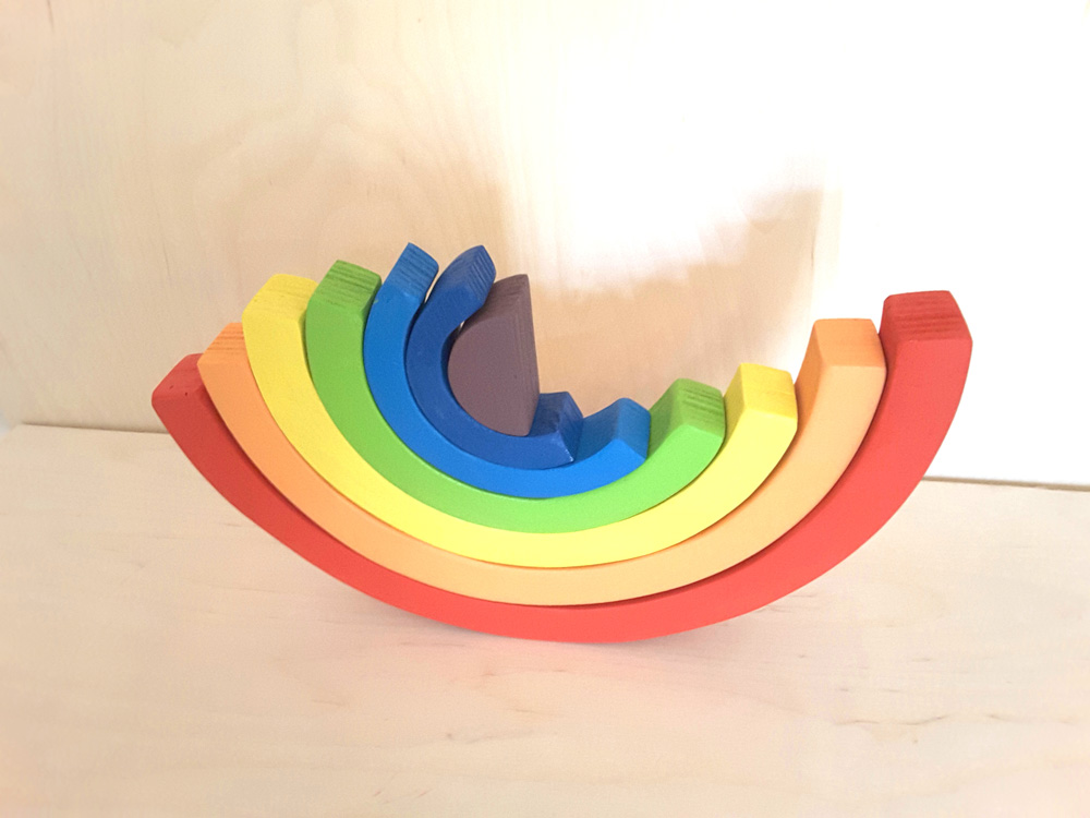 Questo arcobaleno impilabile è progettato per offrire ai bambini ampie possibilità di gioco. Infatti le varie parti possono essere utilizzate non soltanto per formare l’arcobaleno ma anche per creare altri giochi e attività secondo la fantasia del bambino che lo utilizza.