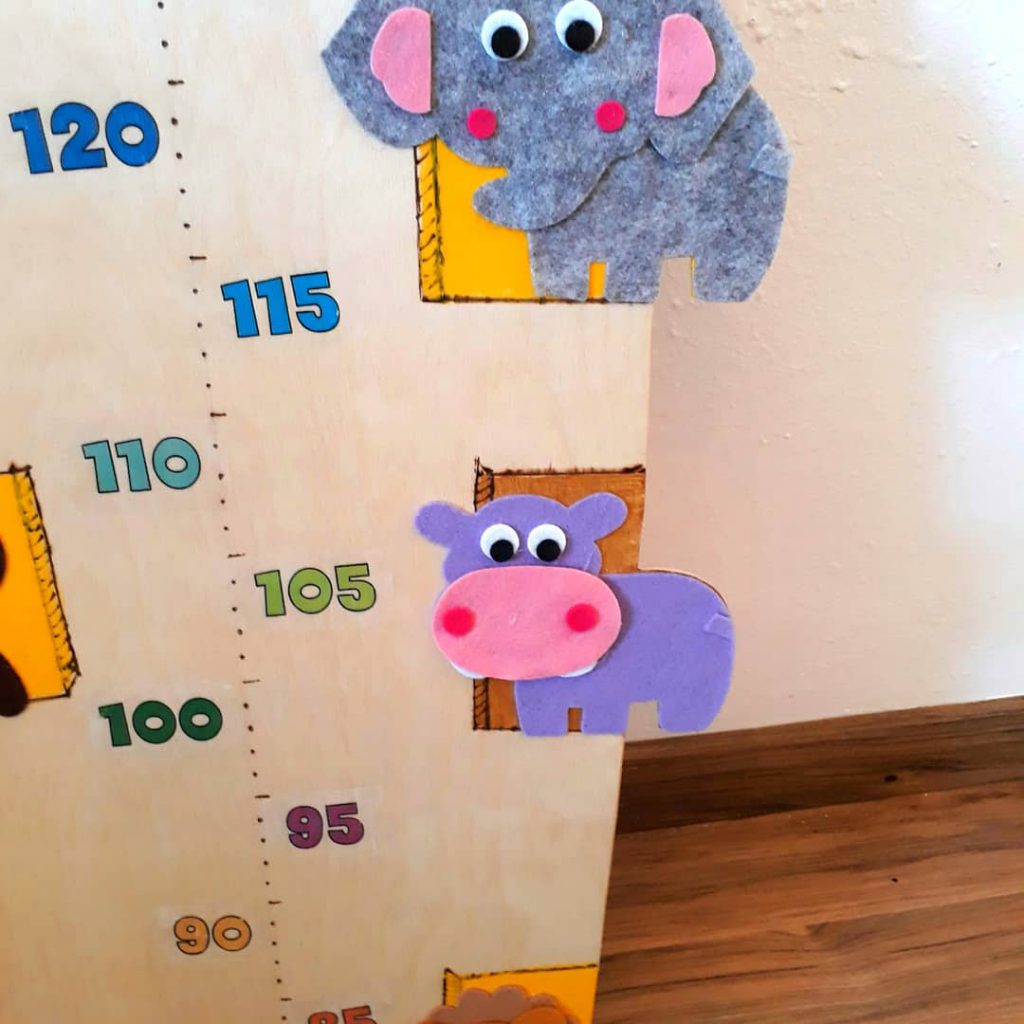 Posizionato alla parete può dimostrarsi un regalo simpatico e utile alla misurazione dell’altezza dei bimbi fino a 150cm.