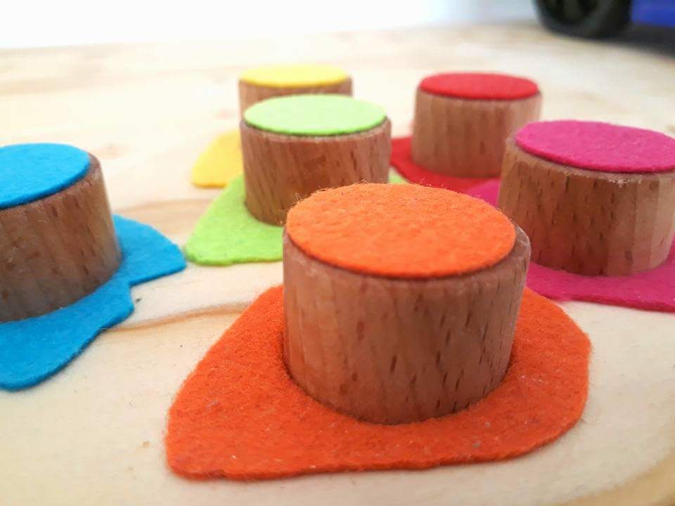 Il gioco consiste nel collocare i cilindri colorati nei fori ciechi disposti sulla tavolozza.