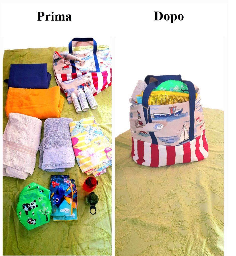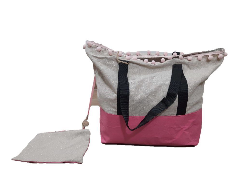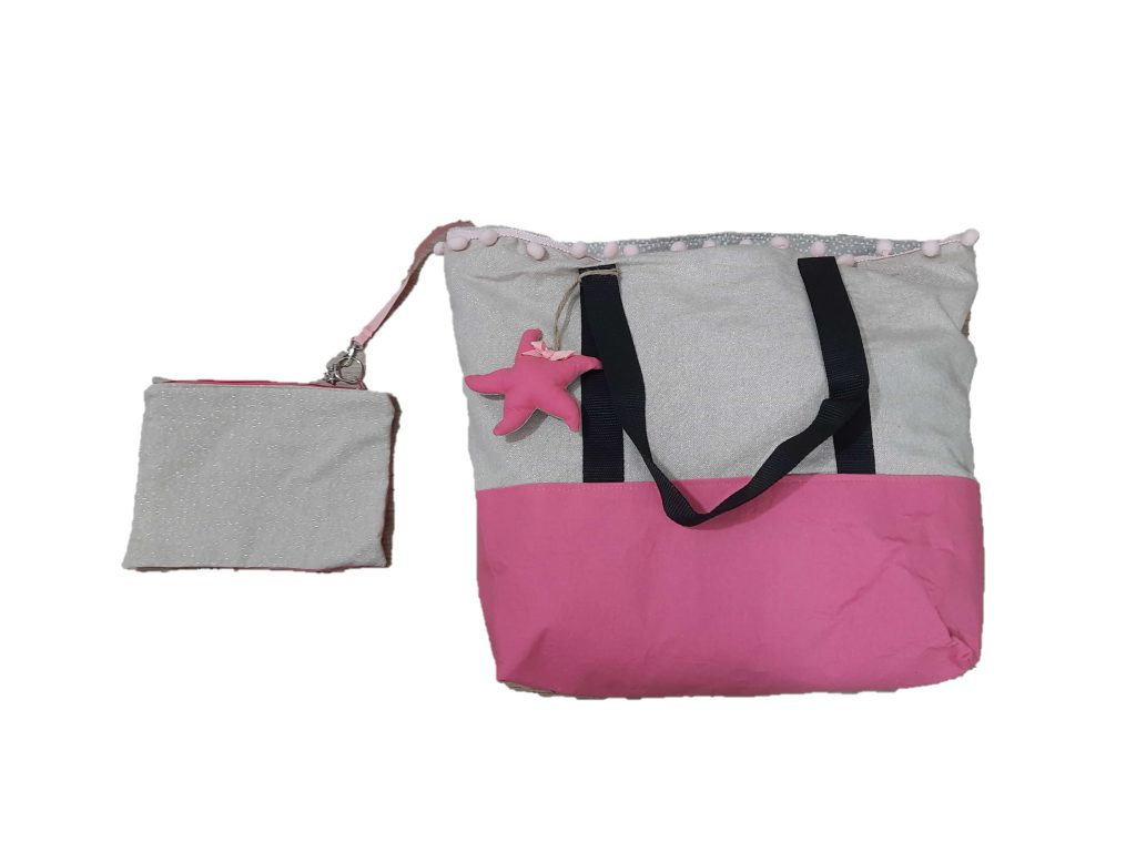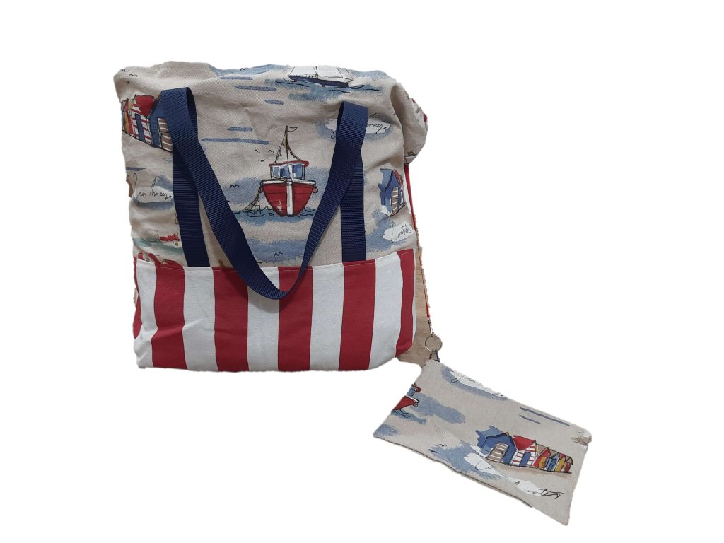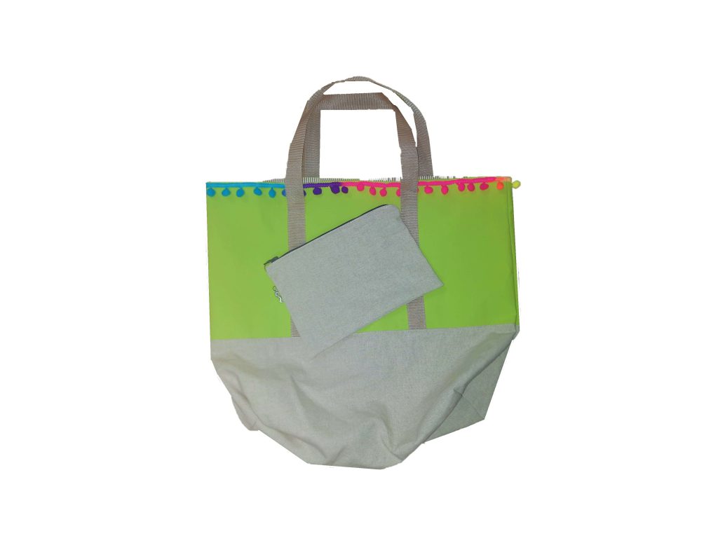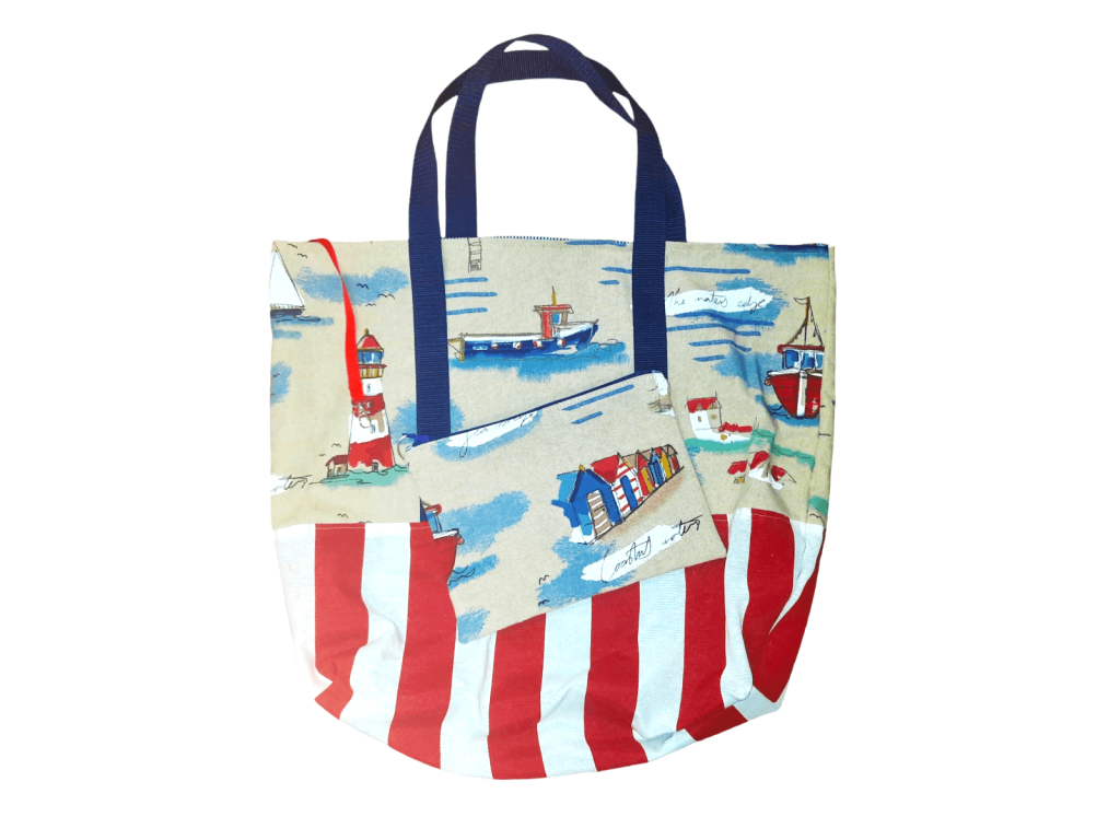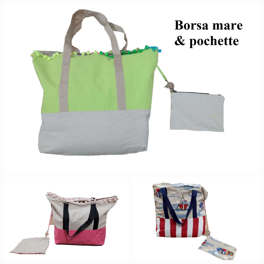 Borsa Mare + Pochette: borsa mare capiente con abbinata un astuccio/pochette per occhiali, portafoglio o piccoli oggetti da tenere al riparo da salsedine e sabbia (borsa 49x47cm – pochette 24x17cm)