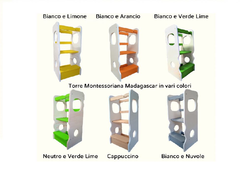 Learning Tower Torre Montessoriana MADAGASCAR VARI COLORI altezza regolabile