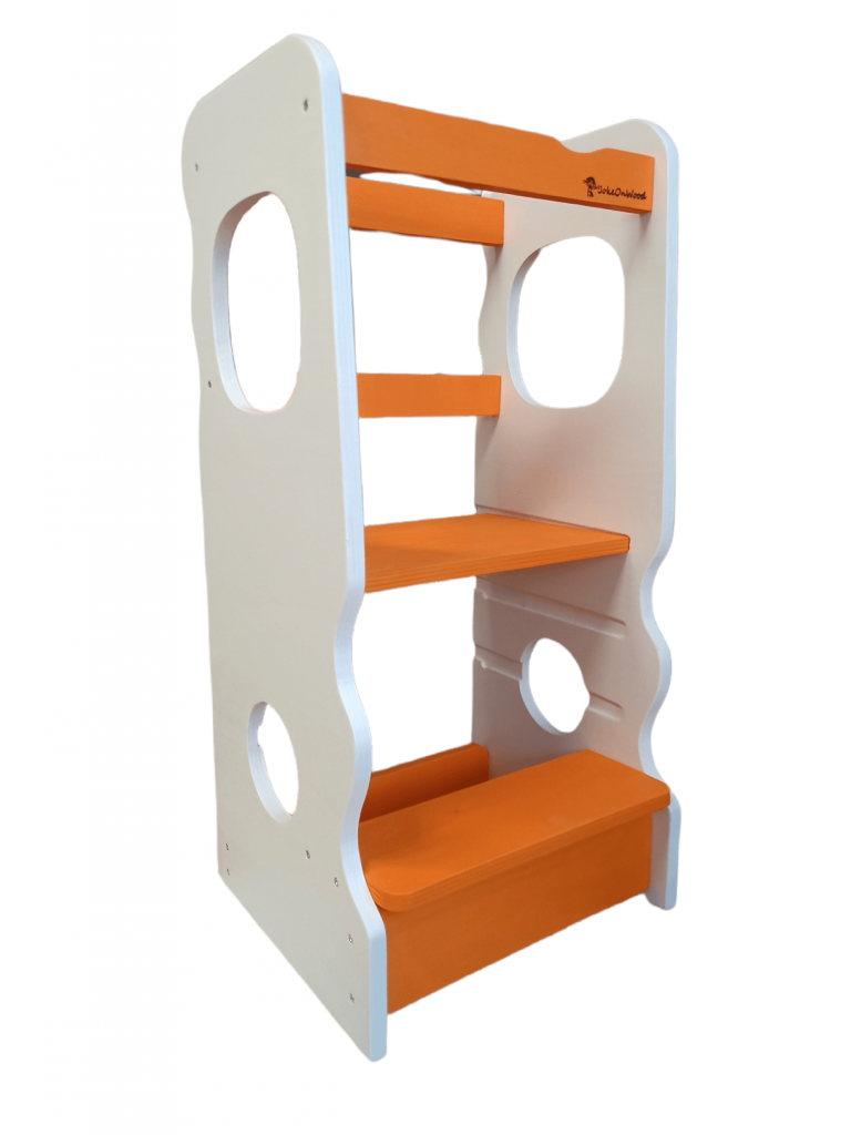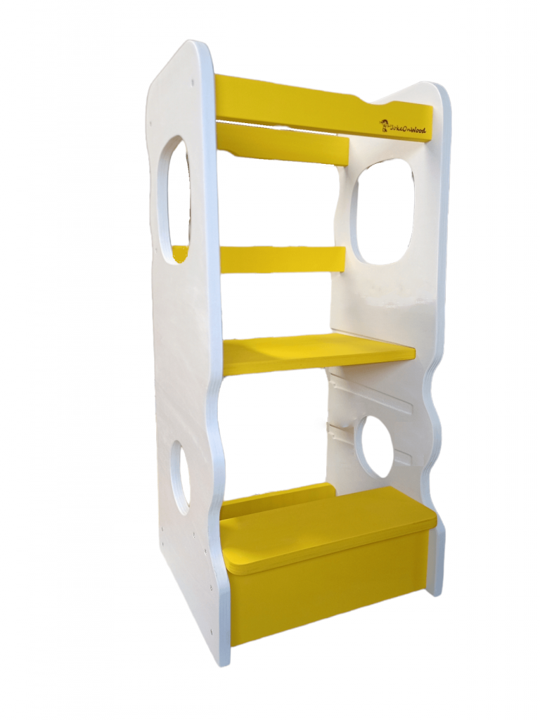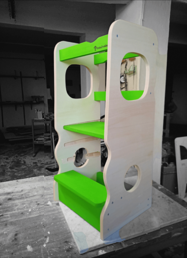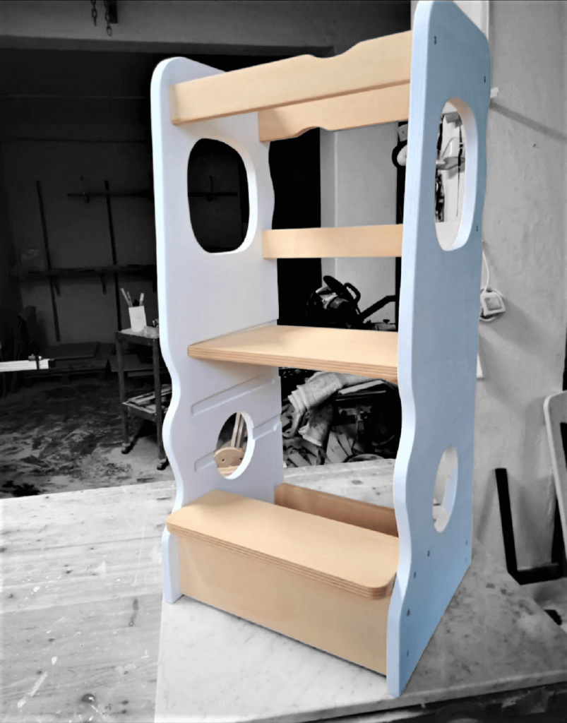 Le scanalature fresate all’interno rendono questa torretta più funzionale nel tempo. Grazie ad esse avrete la possibilità di abbassare o alzare il piano di appoggio a 20,a 30 o a 40cm da terra in base alla crescita del bambino.